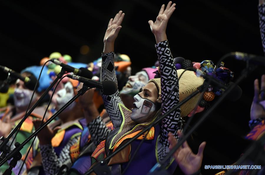 Imagen del 28 de febrero de 2019 de Leticia Tzitzios (d), de 22 a?os de edad, integrante de la murga La Venganza de los Utileros, participando durante una actuación en un tablado, en Montevideo, capital de Uruguay. Las murgas son agrupaciones que practican un género coral-teatral-musical y que participan en el Carnaval uruguayo desfilando o ancladas en un mismo lugar, y que suelen componerse por un coro de entre 13 y 17 personas con el acompa?amiento musical de bombo, platillos y redoblante. De 20 murgas que participan en el concurso oficial este a?o, siete tienen integrantes mujeres, mientras que de casi 350 murguistas en total, solo 13 son mujeres. Leticia es componente y letrista de la murga, estudia en la Facultad de Ciencias Económicas, y también juega fútbol. Su puesto en la murga La Venganza de los Utileros es de "sobreprima" y también escribió la letra de la retirada de la murga en la que participa este a?o. Los diferentes actores del carnaval visualizan la necesidad de repensar el espacio que ocupa hoy la mujer. No obstante, hoy en día continúa siendo un género machista, donde espectadores y artistas valoran más la voz masculina, aunque, cada vez son más las mujeres y hombres que persiguen un carnaval más igualitario. (Xinhua/Nicolás Celaya)