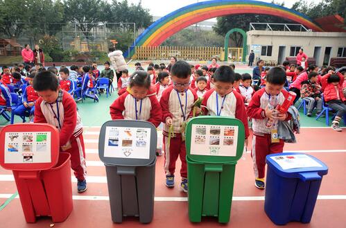 El 25 de febrero de 2019, la guardería Jinyun del distrito Beibei de Chongqing lanzó la actividad "Soy un joven experto en la clasificación de basura", evento en el que los ni?os aumentaron sus conocimientos sobre la protección medioambiental durante el proceso de clasificación de basura.(Qin Tingfu / Diario del Pueblo)