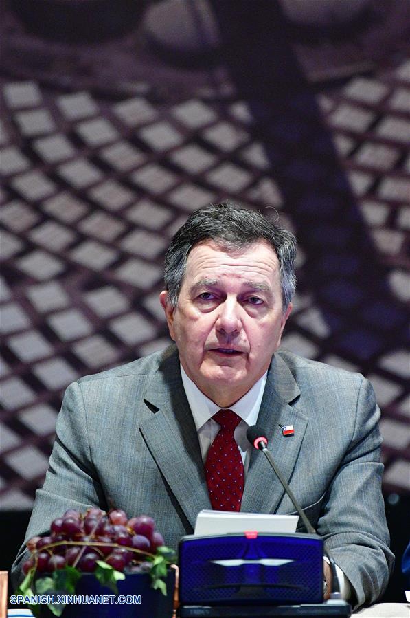 SANTIAGO, 4 marzo, 2019 (Xinhua) -- El ministro de Relaciones Exteriores de Chile, Roberto Ampuero, pronuncia un discurso durante la inauguración de la reunión del APEC Vision Group (AVG), en Santiago, capital de Chile, el 4 de marzo de 2019. El Foro de Cooperación Económica Asia-Pacífico (APEC) está listo para conectar las lecciones del pasado con la visión del futuro, afirmó el lunes el canciller chileno, Roberto Ampuero. (Xinhua/Jorge Villegas)