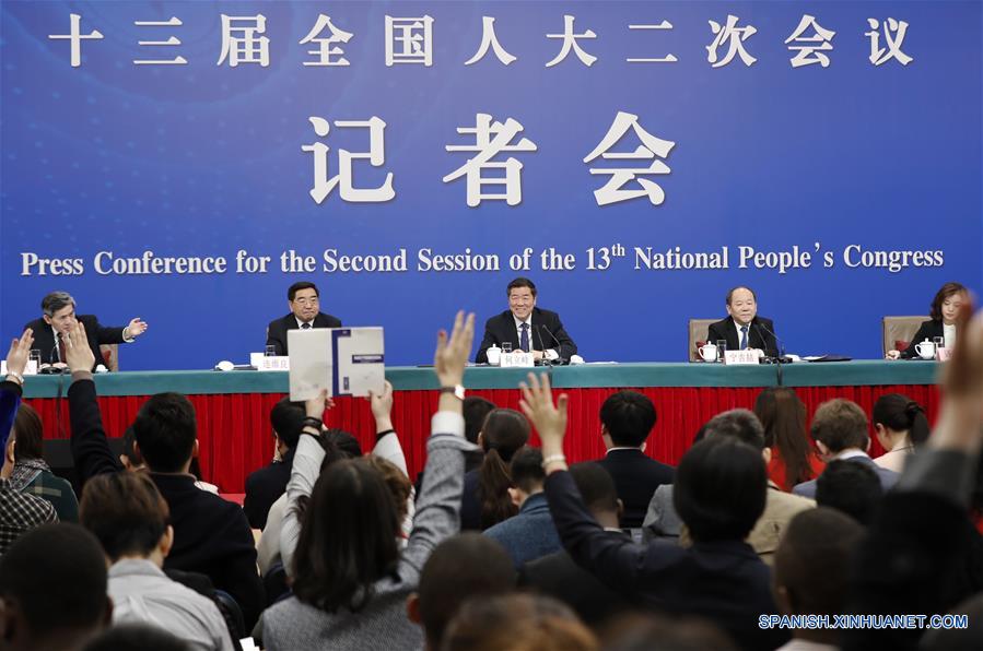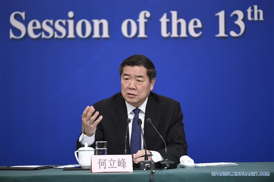 He Lifeng, director de la Comisión Nacional de Desarrollo y Reforma, responde preguntas durante una conferencia de prensa sobre el impulso del desarrollo de alta calidad de la economía china en el marco de la segunda sesión de la XIII Asamblea Popular Nacional en Beijing, capital de China, el 6 de marzo de 2019.(Xinhua/Wang Peng)