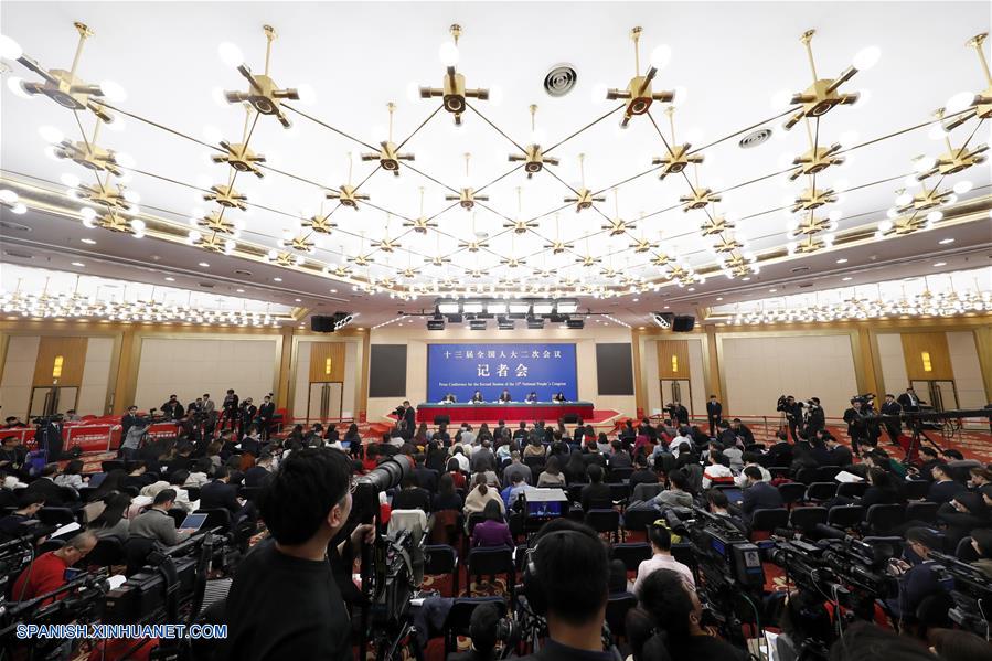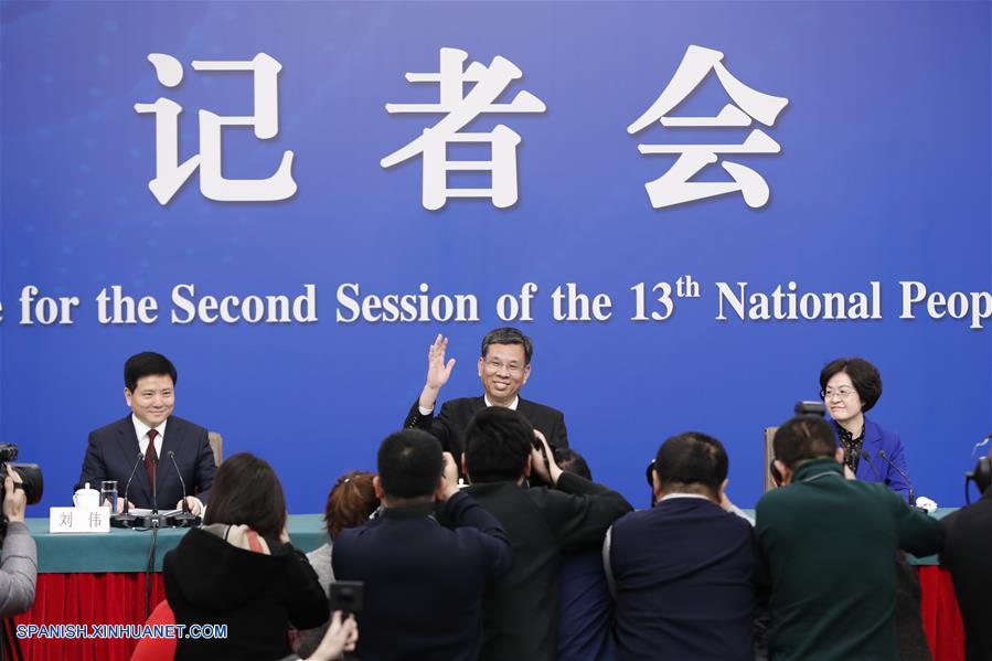 BEIJING, 7 marzo, 2019 (Xinhua) -- El ministro de Hacienda, Liu Kun (c), y los viceministros Cheng Lihua (d) y Liu Wei participan en una conferencia de prensa sobre las reformas fiscales y tributarias y del trabajo fiscal, en el marco de la segunda sesión de la XIII Asamblea Popular Nacional (APN) en Beijing, capital de China, el 7 de marzo de 2019. (Xinhua/Shen Bohan)