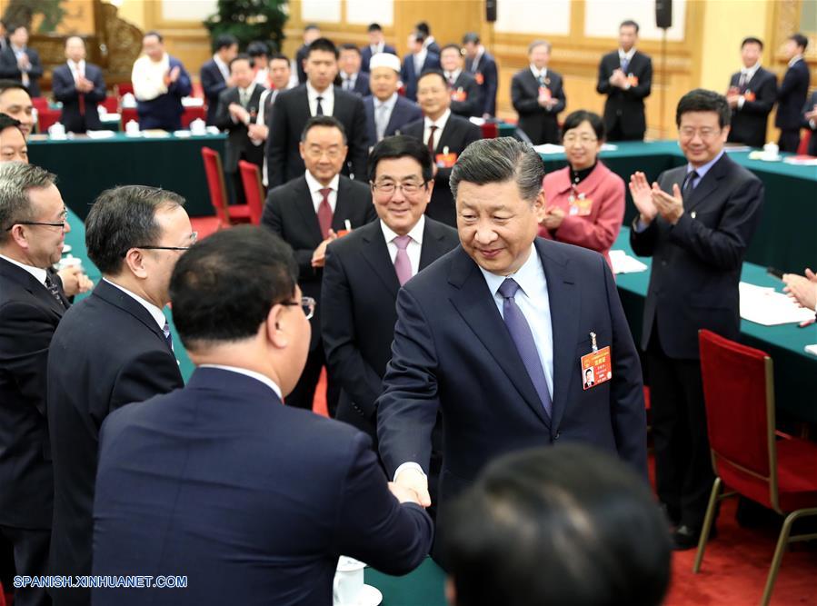 BEIJING, 7 marzo, 2019 (Xinhua) -- El presidente chino Xi Jinping, también secretario general del Comité Central del Partido Comunista de China (PCCh) y presidente de la Comisión Militar Central, participa en una discusión en grupo con diputados de la provincia de Gansu durante la segunda sesión de la XIII Asamblea Popular Nacional (APN) en Beijing, capital de China, el 7 de marzo de 2019. (Xinhua/Ju Peng)