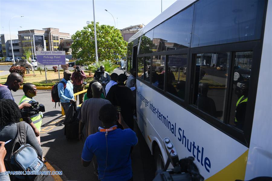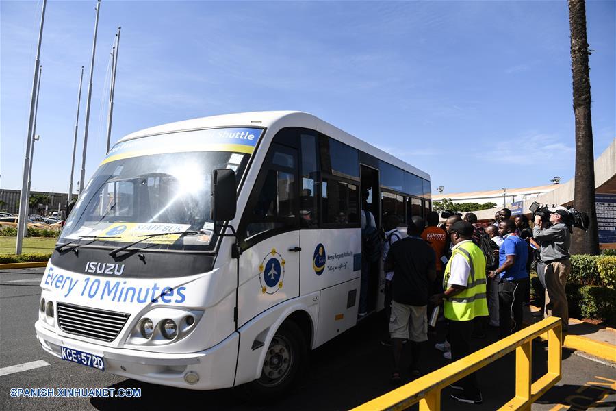 Familiares de las víctimas del vuelo ET302 de Ethiopian Airlines toman un autobús de enlace a un hotel para esperar más información, en el Aeropuerto Internacional Jomo Kenyatta, en Nairobi, capital de Kenia, el 10 de marzo de 2019. Ethiopian Airlines confirmó la muerte de las 157 personas a bordo del vuelo con destino a Nairobi, Kenia, que se estrelló la ma?ana del domingo. Las 157 personas a bordo del ET 302 incluían a ciudadanos de más de 30 países, confirmó en conferencia de prensa el director general de Ethiopian Airlines Group, Tewolde Gebremariam. (Xinhua/Li Yan)