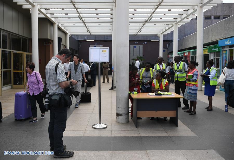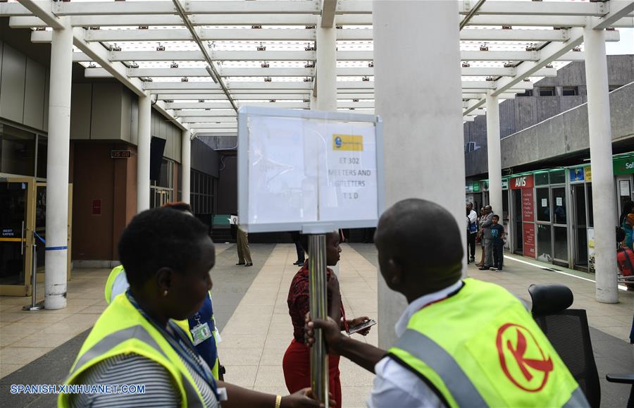 Trabajadores esperan para ayudar a familiares de las víctimas del vuelo ET302 de Ethiopian Airlines, en el Aeropuerto Internacional Jomo Kenyatta, en Nairobi, capital de Kenia, el 10 de marzo de 2019. Ethiopian Airlines confirmó la muerte de las 157 personas a bordo del vuelo con destino a Nairobi, Kenia, que se estrelló la ma?ana del domingo. Las 157 personas a bordo del ET 302 incluían a ciudadanos de más de 30 países, confirmó en conferencia de prensa el director general de Ethiopian Airlines Group, Tewolde Gebremariam. (Xinhua/Li Yan)