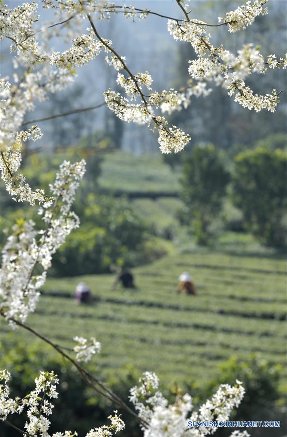 HUBEI, 11 marzo, 2019 (Xinhua) -- Residentes recolectan hojas de té de principios de primavera en la villa Changyangou, del municipio de Wanzhai, en el condado de Xuan'en, en la Prefectura Autónoma Tujia y Miao, en la provincia de Hubei, en el centro de China, el 11 de marzo de 2019. Con el aumento en la temperatura, los granjeros se encuentran ocupados con su trabajo agrícola. (Xinhua/Song Wen)
