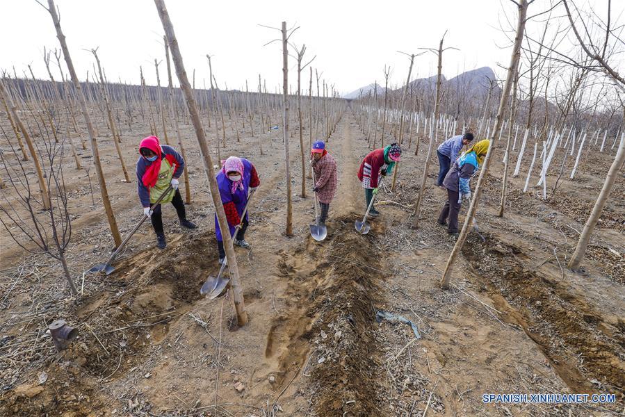 HEBEI, 11 marzo, 2019 (Xinhua) -- Granjeros trabajan en los campos en la villa Shanligezhuang, en el municipio de Tuanpiaozhuang, de la ciudad de Zunhua, en Tangshan, en la provincia de Hebei, en el norte de China, el 11 de marzo de 2019. Con el aumento en la temperatura, los granjeros se encuentran ocupados con su trabajo agrícola. (Xinhua/Liu Mancang)