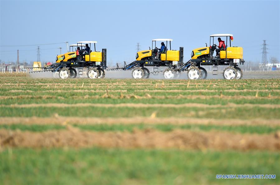 HEBEI, 11 marzo, 2019 (Xinhua) -- Granjeros trabajan con segadoras en los campos en la villa Meihua, del distrito de Gaocheng, en la ciudad de Shijiazhuang, en la provincia de Hebei, en el norte de China, el 11 de marzo de 2019. Con el aumento en la temperatura, los granjeros se encuentran ocupados con su trabajo agrícola. (Xinhua/Zhang Xiaofeng)