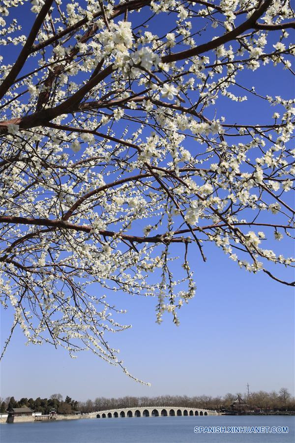 BEIJING, 13 marzo, 2019 (Xinhua) -- Vista de las flores en el Palacio de Verano, en Beijing, capital de China, el 13 de marzo de 2019. (Xinhua/Liu Xianguo)