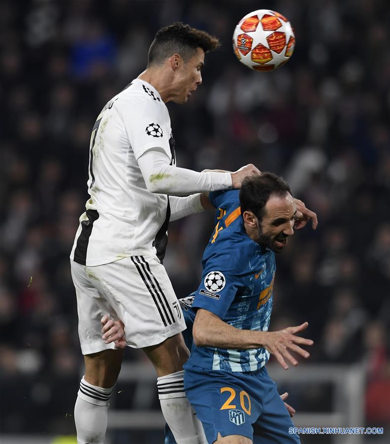 TURIN, 13 marzo, 2019 (Xinhua) -- Imagen del 12 de marzo de 2019 del jugador Cristiano Ronaldo (i), de Juventus, disputando el balón con Juanfran (d), de Atlético de Madrid, durante un partido de vuelta de los octavos de final de la Liga de Campeones de la Unión de Asociaciones de Fútbol Europeas (UEFA, por sus siglas en inglés), celebrado en Turín, Italia. Juventus ganó el encuentro. (Xinhua/Alberto Lingria)