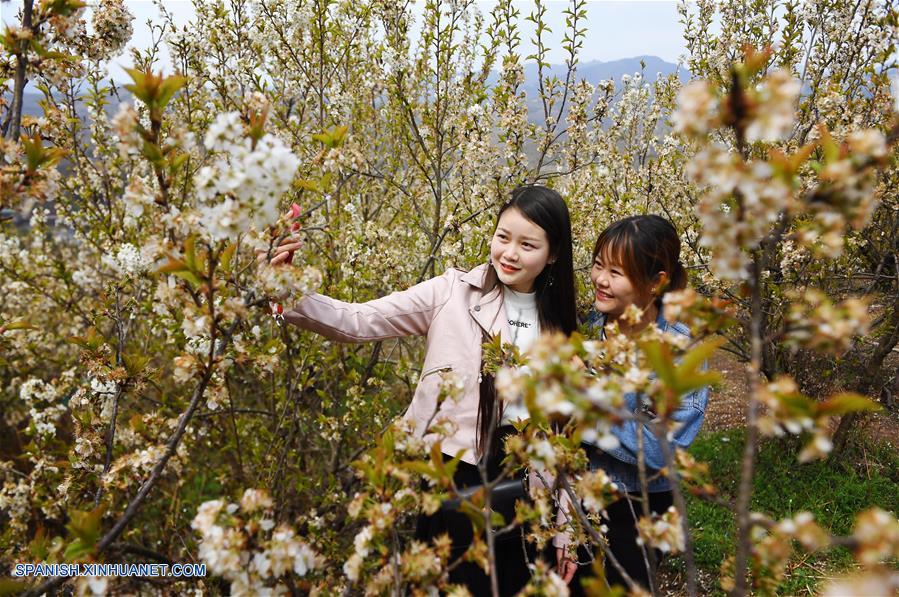 SHAANXI, 15 marzo, 2019 (Xinhua) -- Imagen del 14 de marzo de 2019 de una vista de las flores de cerezo, en el condado de Xixiang, provincia de Shaanxi, en el noroeste de China. (Xinhua/Liu Xiao)