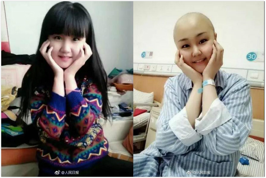 Sun Ying, de 21 a?os, ha estado luchando para hacer malabarismos entre el tratamiento del cáncer y la vida universitaria desde 2015, cuando le diagnosticaron cáncer linfático. Durante los últimos a?os, ella ha llevado peluca para asistir a clases en la Universidad Normal de Henan. No fue hasta el pasado abril, cuando su familia no pudo soportar su costoso tratamiento, que sus compa?eros se enteraron de su enfermedad.