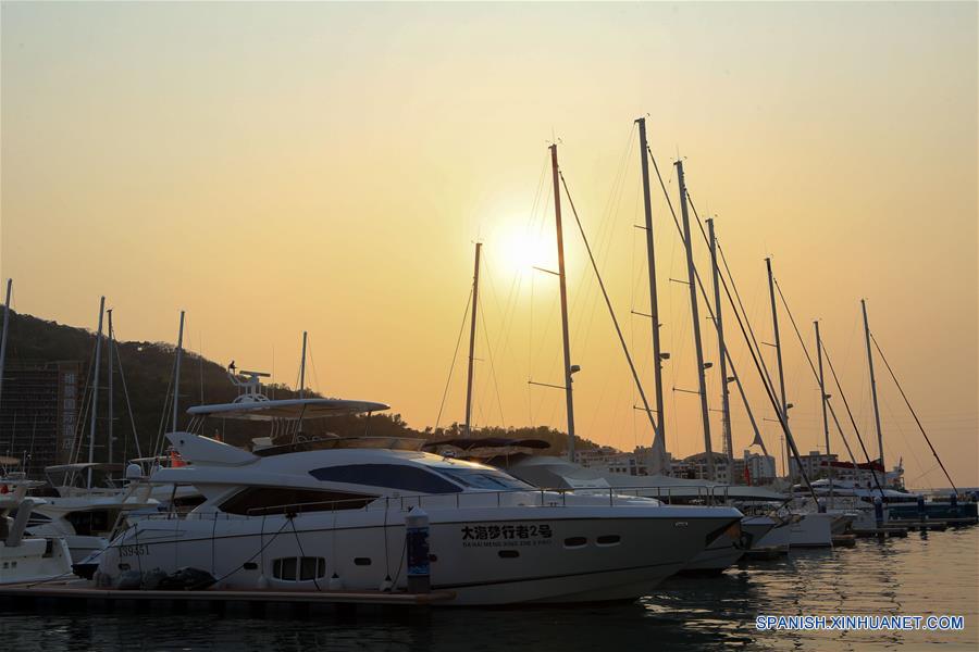 HAINAN, 18 marzo, 2019 (Xinhua) -- Imagen del 17 de marzo de 2019 de yates atracados en el muelle de Hongzhou, en el distrito Jiyang de Sanya, en la provincia de Hainan, en el sur de China. Más de 76 millones de turistas nacionales y extranjeros visitaron la provincia insular en 2018, una subida interanual del 11,8 por ciento, y los ingresos de turismo aumentaron un 14,5 por ciento durante el a?o anterior y superaron los 95.000 millones de yuanes (14.000 millones de dólares), mostraron los datos de la autoridad de turismo de Hainan. (Xinhua/Sui Xiankai)
