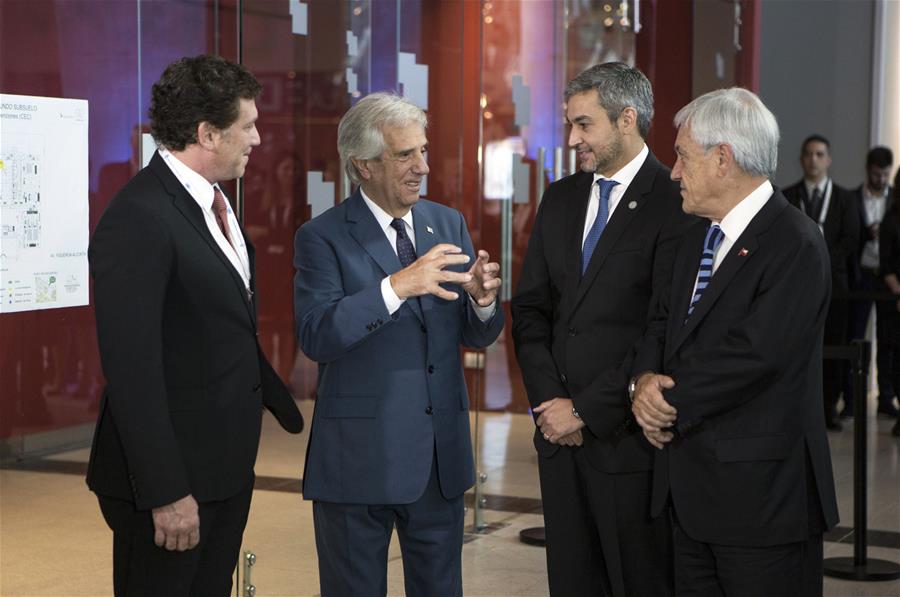 (De izq. a der.) El presidente de la Confederación Sudamericana de Fútbol (CONMEBOL), Alejandro Domínguez, el presidente de Uruguay, Tabaré Vázquez, el presidente de Paraguay, Mario Abdo Benítez, y el presidente de Chile, Sebastián Pi?era, conversan previo al inicio de la II Conferencia de Alto Nivel de las Naciones Unidas sobre la Cooperación Sur-Sur, en el Centro de Exposiciones y Convenciones (CEC) en la ciudad de Buenos Aires, capital de Argentina, el 20 de marzo de 2019. (Xinhua/Martín Zabala)