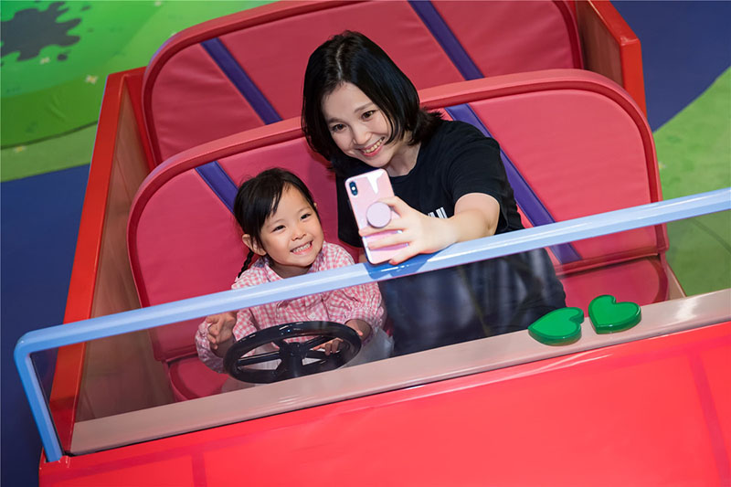 Una mujer y su hija montan en el coche del padre de Peppa. [Foto provista a chinadaily.com.cn]