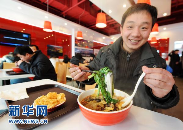 Un comensal está disfrutando del Luosifen. (Foto: Li Bin / Xinhua)