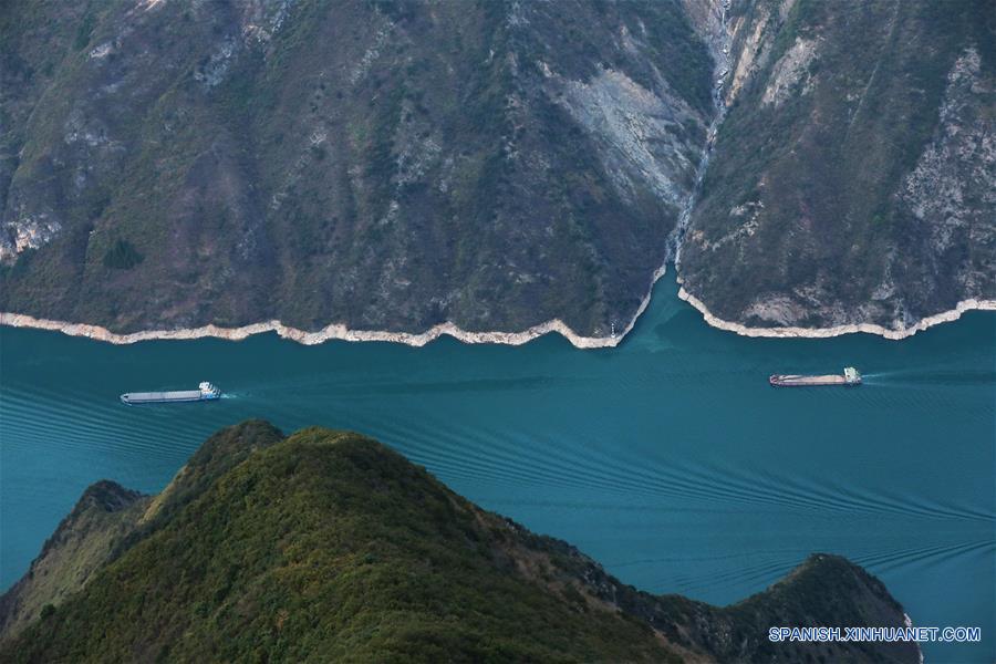 CHONGQING, 27 marzo, 2019 (Xinhua) -- Imagen del 26 de marzo de 2019 de buques navegando en la Garganta Wuxia, una de las Tres Gargantas sobre el Río Yangtze, en el condado de Wushan de la municipalidad de Chongqing, en el suroeste de China. (Xinhua/Wang Quanchao)