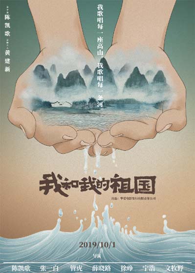 Chen Kaige (centro de la imagen) anuncia en Beijing una próxima película, Wo He Wo De Zuguo (Yo y la Madre Patria), que marca el 70 aniversario de la fundación de la República Popular China. [Foto proporcionada a China Daily]