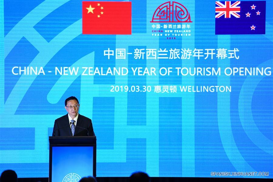 El ministro de Cultura y Turismo chino, Luo Shugang, pronuncia un discurso en la ceremonia de apertura del A?o de Turismo China-Nueva Zelanda 2019, en Wellington, Nueva Zelanda, el 30 de marzo de 2019. El A?o de Turismo China-Nueva Zelanda 2019 fue lanzado el sábado en Wellington con el objetivo de fortalecer los lazos económicos y culturales entre los dos países. (Xinhua/Guo Lei)