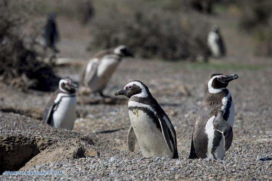 CHUBUT, 1 abril, 2019 (Xinhua) -- Imagen del 28 de marzo de 2019, de pingüinos de Magallanes caminando en el Area Natural Protegida Punta Tombo, en la provincia de Chubut, Argentina. Con la llegada del oto?o a la Patagonia argentina, los pingüinos de Magallanes, las aves marinas más abundantes de la costa atlántica sur y unas de las mayores atracciones turísticas de la zona, se preparan para emigrar a las aguas de Brasil luego de haber cumplido su fase reproductiva. (Xinhua/Martín Zabala)