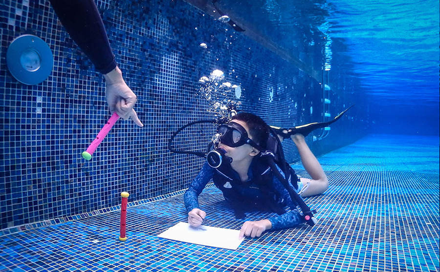 Las sesiones de terapia de buceo de Chan comenzaron hace varios a?os, cuando ense?ó a bucear a sus hijos, ambos con autismo.