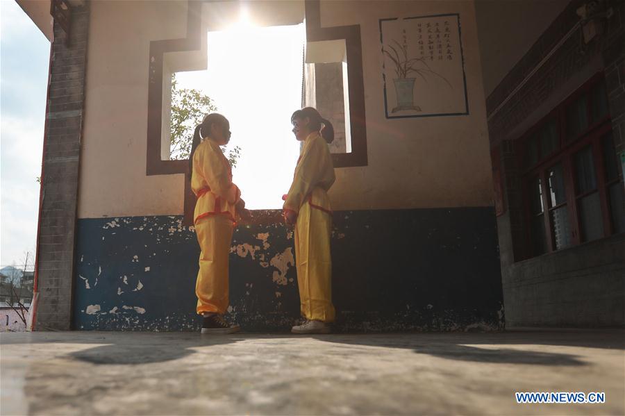 Guiyang, 03/04/2019(El Pueblo en Línea) -Los estudiantes de la Escuela de Primaria e Intermedia de Longli realizan la danza del dragón de Longli en la antigua ciudad de Longli del condado Jinping, provincia de Guizhou, suroeste de China, el 20 de marzo de 2019. Clasificada como patrimonio cultural inmaterial de la provincia de Guizhou en 2005, la danza del dragón de Longli tiene una historia de más de 600 a?os. Se caracteriza por el bello rostro pintado de los bailarines. Desde 2008, la danza del dragón de Longli se ha introducido en la Escuela Primaria e Intermedia de Longli, cuyos estudiantes disfrutan de dos horas a la semana con maestros de la danza del dragón para aprender a confeccionar disfraces, bailar y pintar caras. Al practicar este tipo de arte marcial popular, los jóvenes locales no solo han crecido físicamente, sino que también han desarrollado una profunda comprensión de su propia tradición. Por ahora, unos 500 estudiantes de la escuela se han convertido en los herederos de la danza del dragón de Longli. (Xinhua / Ou Dongqu)