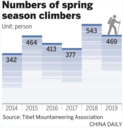 Números de escaladores de la temporada de primavera. [Foto / China Daily]