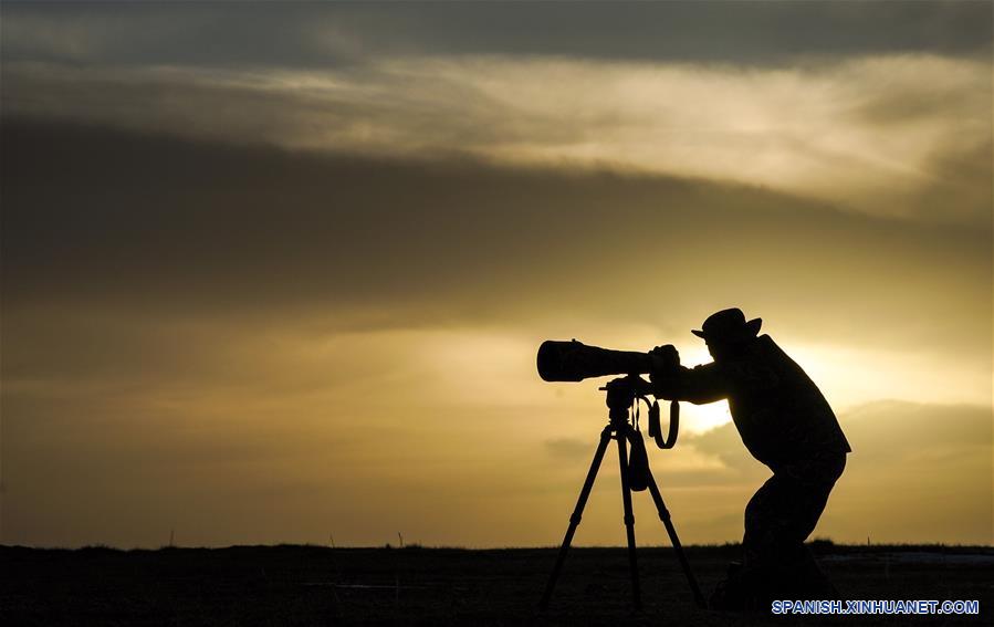 XINJIANG, 4 abril, 2019 (Xinhua) -- Imagen del 2 de abril de 2019 del conservador de vida silvestre Feng Jiang tomando fotografías en la Reserva Natural Nacional de las Monta?as de Altun, en la región autónoma de la etnia uygur de Xinjiang, en el noroeste de China. (Xinhua/Hu Huhu)