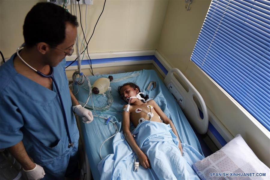 Un doctor brinda tratamiento médico a un estudiante lesionado en un hospital después de un ataque aéreo en Saná, Yemen, el 7 de abril de 2019. La cifra de muertes subió a 11 y la de heridos a 39 luego de que la coalición encabezada por Arabia Saudí lanzó el domingo un ataque aéreo en la capital de Yemen, Saná, bajo control rebelde, dijo el Ministerio de Salud controlado por los rebeldes. (Xinhua/Mohammed Mohammed)