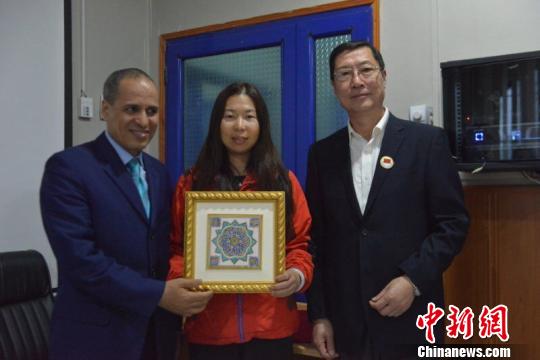 Un funcionario del Ministerio de Salud de Argelia (a la izquierda), el director del equipo de la ayuda médica china y la doctora Li. (Foto: proporcionada por Li)