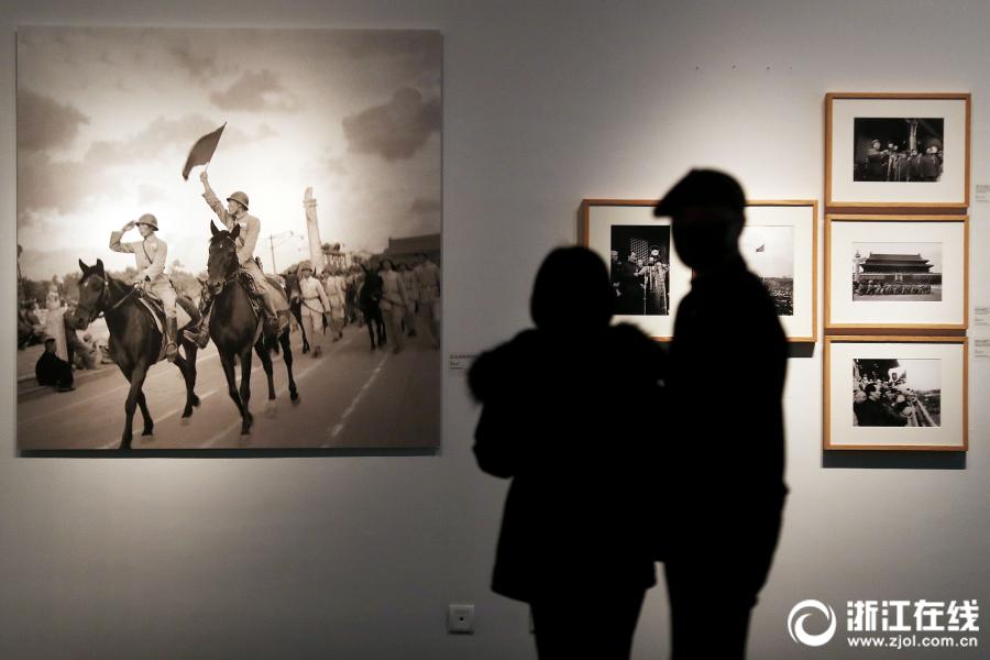 Visitantes aprecian fotos tomadas durante la guerra antijaponesa (1937-1945) que forman parte de una exposición que conmemora el 70 o aniversario de la fundación de la República Popular China en el Museo de la Academia de Arte de China (CAA, por sus siglas en inglés), Hangzhou, provincia de Zhejiang, 3 de abril del 2019. (Foto: zjol.com.cn)