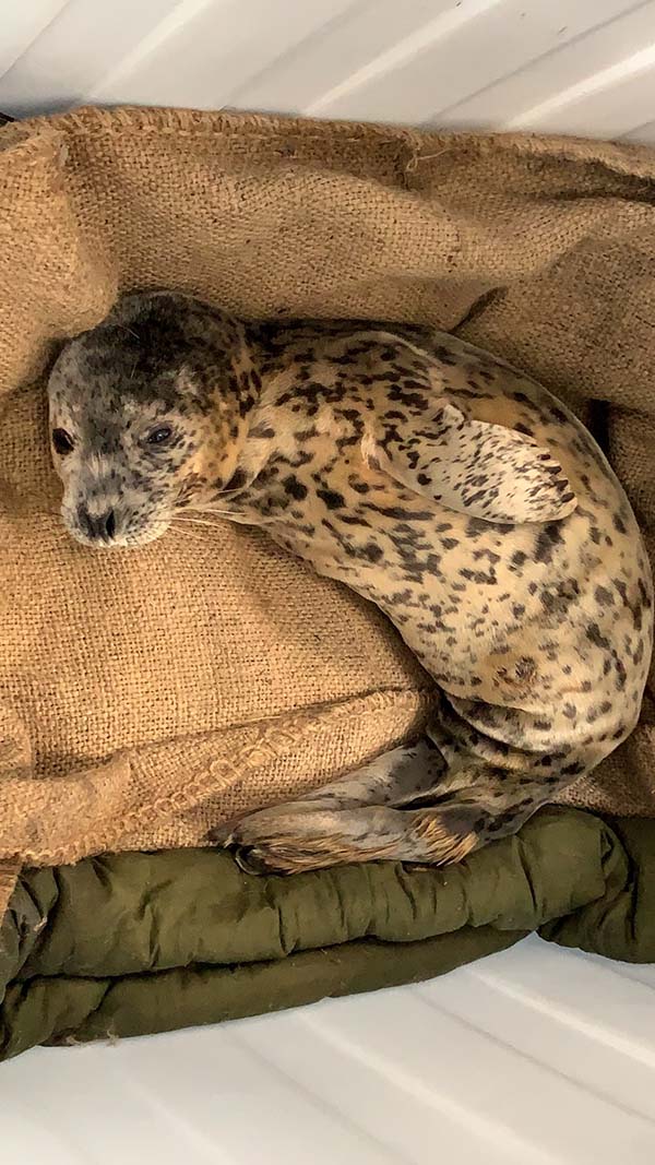 Una foca rescatada se recupera después de haber estado en un estado muy débil. [ZHOU JINFENG / China Daily]