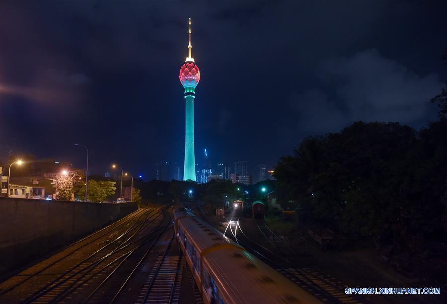 Imagen del 12 de abril de 2019 de una vista nocturna de la Torre Loto, en Colombo, capital de Sri Lanka. Bajo la Iniciativa de la Franja y la Ruta, Sri Lanka y China firmaron el acuerdo de la Torre Loto en 2012 para costruir la torre de televisión más elevada de Asia del Sur, con China National Electronics Import and Export Corporation (CEIEC) siendo el contratista general. Para que la torre sea un éxito, tanto los trabajadores chinos como los locales han trabajado arduamente durante a?os. El proyecto será completado más adelante este a?o, y para entonces, la Torre Loto no sólo funcionará como una torre de televisión, sino también como hotel, centro comercial y centro de conferencias. (Xinhua/Guo Lei)