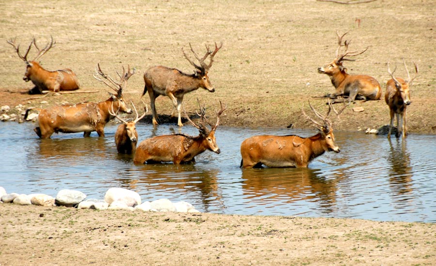 Milu, una especie de ciervo endémica de China que se extinguió en la naturaleza, ahora habita el Parque de Milu de Nanhaizi en el distrito Daxing de Beijing. [FOTO POR GENG FEIFEI / CHINA DAILY]