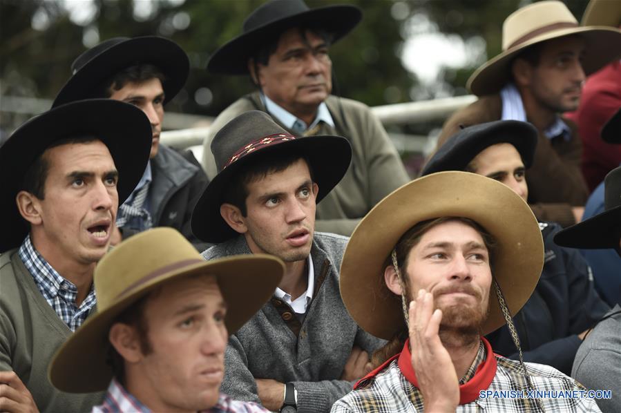 MONTEVIDEO, 15 abril, 2019 (Xinhua) -- Gauchos observan las domas durante la edición 94 de la Semana Criolla del Prado 2019, en el rodeo de la Rural del Prado, en Montevideo, capital de Uruguay, el 15 de abril de 2019. La Semana Criolla del Prado se realiza todos los a?os en un predio de la Asociación Rural en el barrio Prado de la capital uruguaya, acercando la cultura“gauchesca” y la tradición del campo a la capital. La atracción principal del evento es el Concurso de Jineteadas, declaradas Deporte Nacional desde abril de 2006. El evento se lleva a cabo del 14 al 21 de abril. (Xinhua/Nicolás Celaya)
