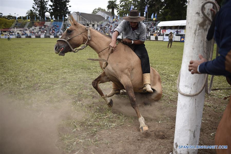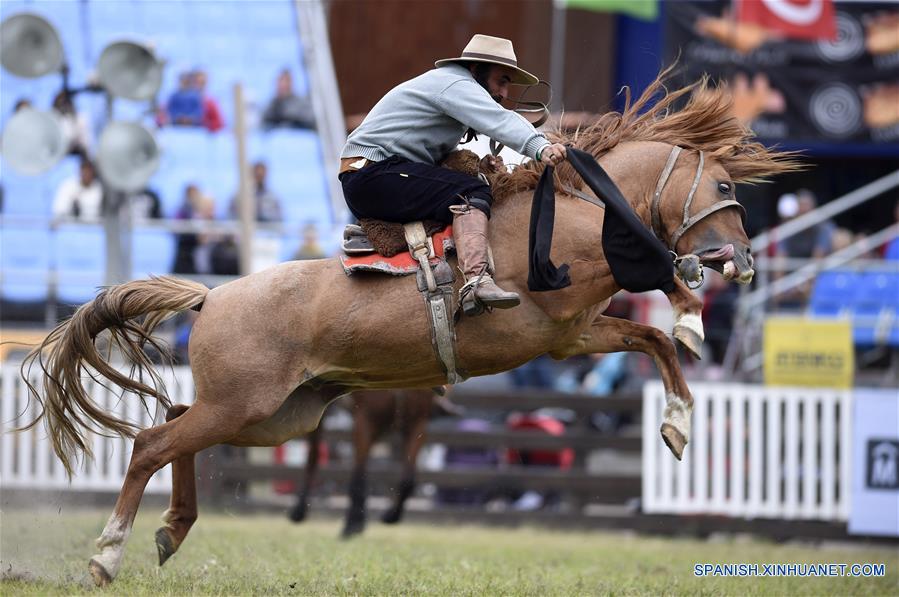 MONTEVIDEO, 15 abril, 2019 (Xinhua) -- Un hombre monta un caballo durante las domas de la edición 94 de la Semana Criolla del Prado 2019, en el rodeo de la Rural del Prado, en Montevideo, capital de Uruguay, el 15 de abril de 2019. La Semana Criolla del Prado se realiza todos los a?os en un predio de la Asociación Rural en el barrio Prado de la capital uruguaya, acercando la cultura“gauchesca” y la tradición del campo a la capital. La atracción principal del evento es el Concurso de Jineteadas, declaradas Deporte Nacional desde abril de 2006. El evento se lleva a cabo del 14 al 21 de abril. (Xinhua/Nicolás Celaya)