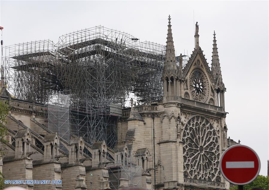 PARIS, 16 abril, 2019 (Xinhua) -- Vista de la da?ada catedral de Notre Dame después de un incendio registrado en París, Francia, el 16 de abril de 2019. El presidente de Francia, Emmanuel Macron, prometió el lunes reconstruir la catedral de Notre Dame, devastada por un incendio, en un lapso de cinco a?os e hizo un llamado a los franceses para que permanezcan unidos. (Xinhua/Gao Jing)