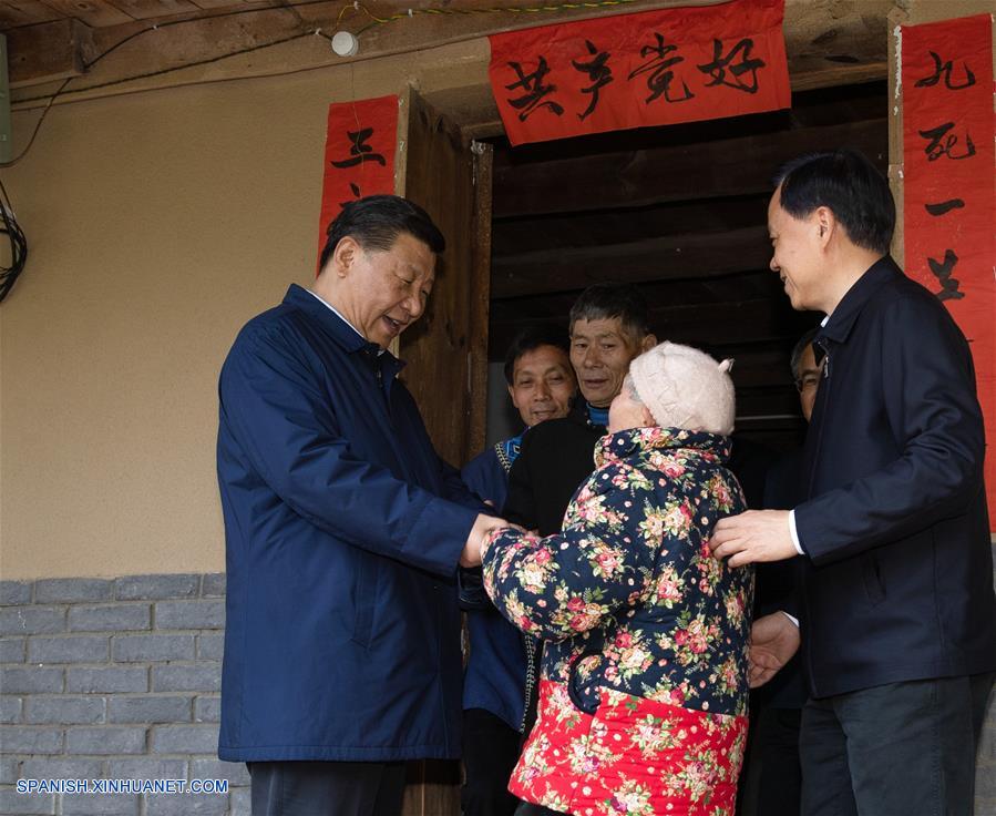 El presidente chino, Xi Jinping, también secretario general del Comité Central del Partido Comunista de China y presidente de la Comisión Militar Central, visita el hogar de la aldeana afectada por la pobreza Tan Dengzhou, en la aldea de Huaxi del distrito autónomo de la etnia tujia de Shizhu, en Chongqing, en el suroeste de China, el 15 de abril de 2019. Xi realizó el lunes una visita de inspección a la municipalidad de Chongqing, en el suroeste de China. (Xinhua/Liu Bin)