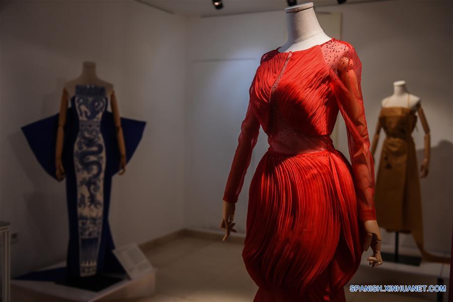 MOSCU, 17 abril, 2019 (Xinhua) -- La exposición se lleva a cabo del 16 al 29 de abril, presentando 30 dise?os de moda de seda china de diferentes estilos. (Xinhua/Evgeny Sinitsyn)