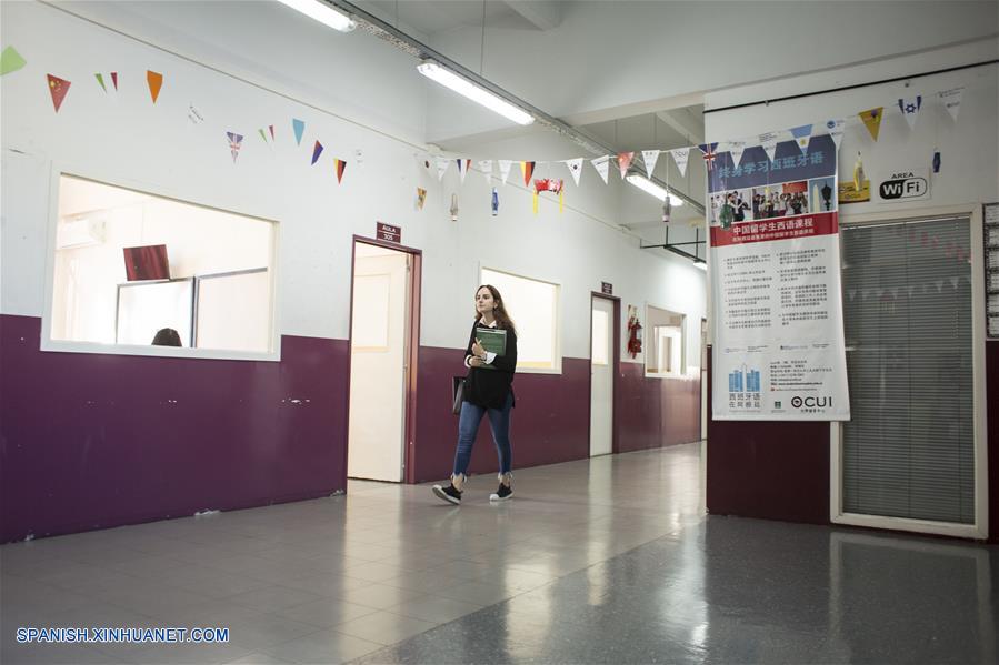 Imagen del 16 de abril de 2019, de Constanza Reche caminando por un pasillo luego de tomar una clase de idioma chino en el Centro Universitario de Idiomas (CUI), en Buenos Aires, Argentina. El idioma chino, cuyo aprendizaje se extiende cada a?o en Argentina, ha transformado la vida de una joven estudiante del país, que resalta la importancia de hablar esa lengua como herramienta cultural y para ampliar su horizonte laboral. Constanza Reche, de 23 a?os, es estudiante de Comercio Internacional de la Universidad Argentina de la Empresa (UADE) y, además, aprende chino en el CUI que, junto con el Instituto Confucio de la Universidad de Buenos Aires (ICUBA), ense?a esta lengua. Desde 2010, cada 20 de abril se celebra en todo el mundo el Día de la Lengua China en las Naciones Unidas (ONU), para realzar la contribución global de este idioma y con el fin de que más gente lo aprenda. (Xinhua/Martín Zabala)