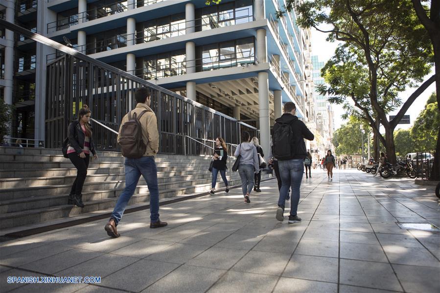 Imagen del 16 de abril de 2019, de Constanza Reche (c) ingresando a la sede de la Universidad Argentina de la Empresa (UADE) donde cursa la carrera de Comercio Internacional, en Buenos Aires, Argentina. El idioma chino, cuyo aprendizaje se extiende cada a?o en Argentina, ha transformado la vida de una joven estudiante del país, que resalta la importancia de hablar esa lengua como herramienta cultural y para ampliar su horizonte laboral. Constanza Reche, de 23 a?os, es estudiante de Comercio Internacional de la UADE y, además, aprende chino en el Centro Universitario de Idiomas (CUI) que, junto con el Instituto Confucio de la Universidad de Buenos Aires (ICUBA), ense?a esta lengua. Desde 2010, cada 20 de abril se celebra en todo el mundo el Día de la Lengua China en las Naciones Unidas (ONU), para realzar la contribución global de este idioma y con el fin de que más gente lo aprenda. (Xinhua/Martín Zabala)