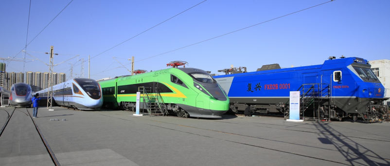 Los trenes bala Fuxing se exhiben en la exposición de logros chinos en ciencia y tecnología ferroviaria, 25 de diciembre de 2018. (Foto: Pueblo en Línea)