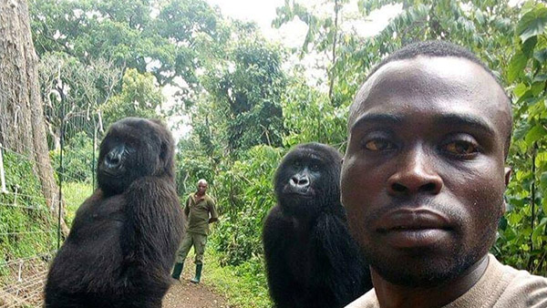 Kinsasa,22/04/2019(El Pueblo en Línea) - El selfie de un guardia forestal en el Parque Nacional de Virunga, en la República Democrática del Congo, se ha vuelto viral tras recorrer el mundo por la peculiar postura de los animales que lo acompa?an. El parque es el hogar de la mayor población de gorilasde monta?a, según La Vanguardia.