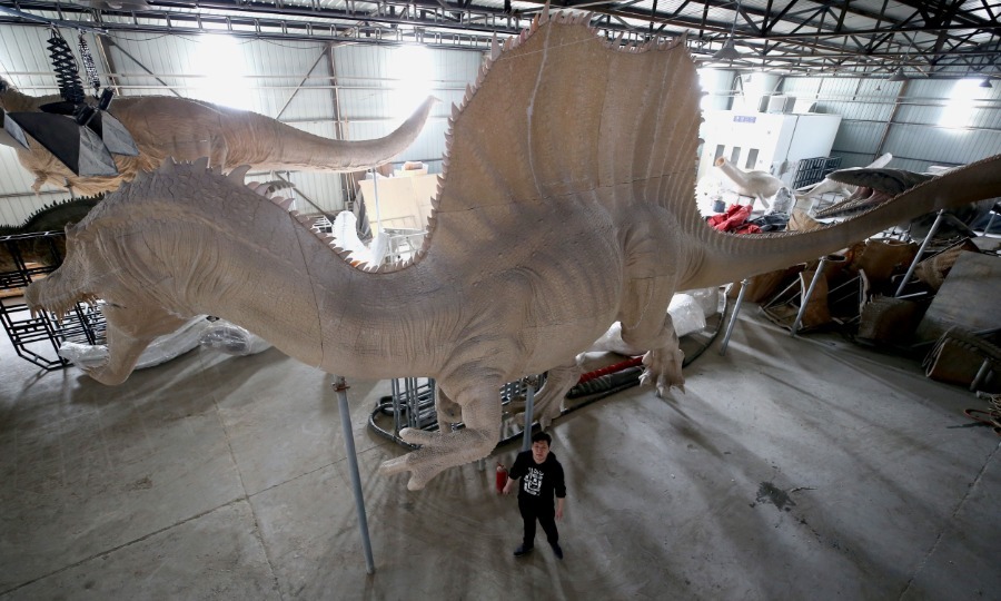Una estatua de Spinosaurus a tama?o natural por Zhao Chuang. [Foto de Chen Zebing / China Daily]