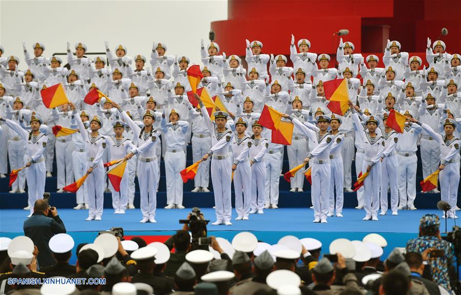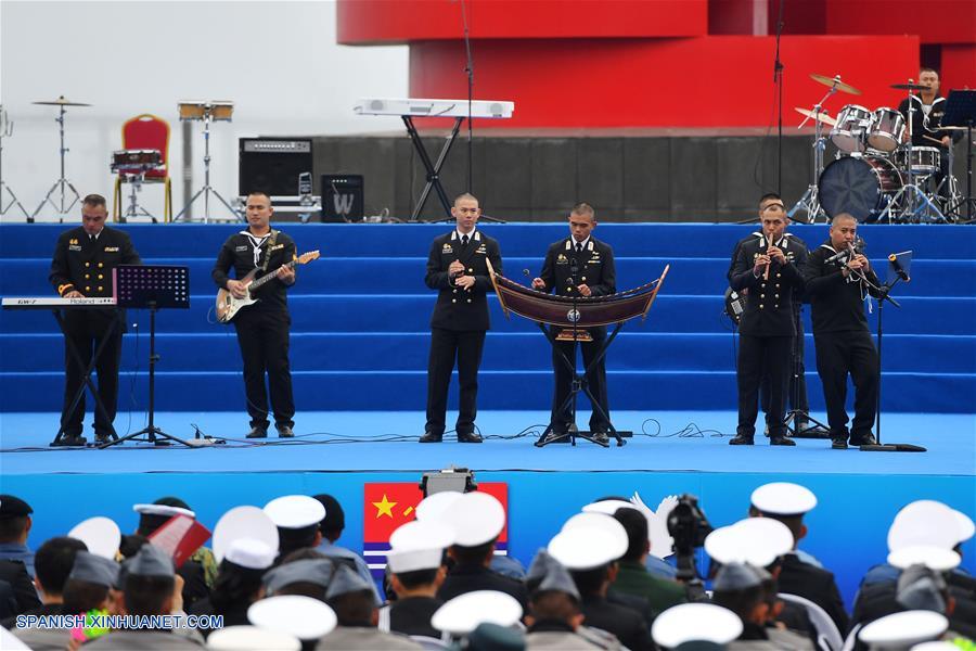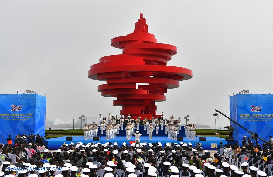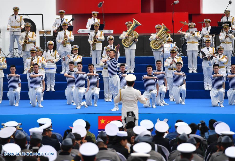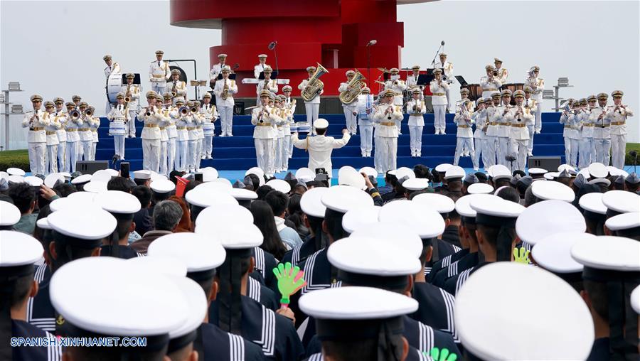 QINGDAO, 22 abr (Xinhua) -- China celebró hoy lunes por la tarde una interpretación conjunta de música militar en la ciudad costera de Qingdao, en el este de China, con motivo del 70o aniversario de la fundación de la Armada del Ejército Popular de Liberación (EPL).