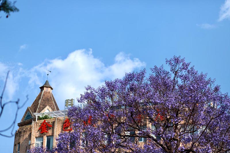 La jacaranda azul en flor atrae a turistas de todo el país, que llegan a la ciudad de Kunming en la provincia de Yunnan, suroeste de China, cada abril. [Foto por Xie Quanming / proporcionada a chinadaily.com.cn]