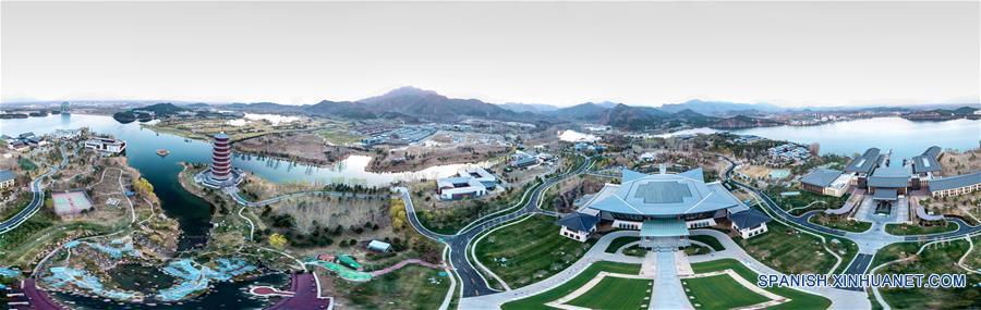 BEIJING, 24 abril, 2019 (Xinhua) -- Imagen del 2 de abril de 2019 de una vista aérea del paisaje del Centro Internacional de Exposiciones y Convencionas del lago Yanqi, en Beijing, capital de China. El II Foro de la Franja y la Ruta para la Cooperación Internacional se llevará a cabo del 25 al 27 de abril en Beijing. (Xinhua/Cai Yang)