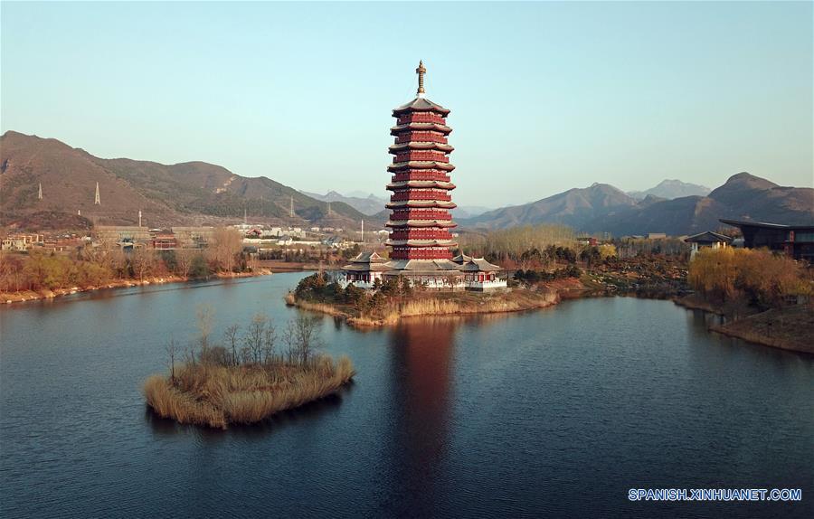 BEIJING, 24 abril, 2019 (Xinhua) -- Imagen del 3 de abril de 2019 de una vista aérea del paisaje del lago Yanqi, en Beijing, capital de China. El II Foro de la Franja y la Ruta para la Cooperación Internacional se llevará a cabo del 25 al 27 de abril en Beijing. (Xinhua/Cai Yang)