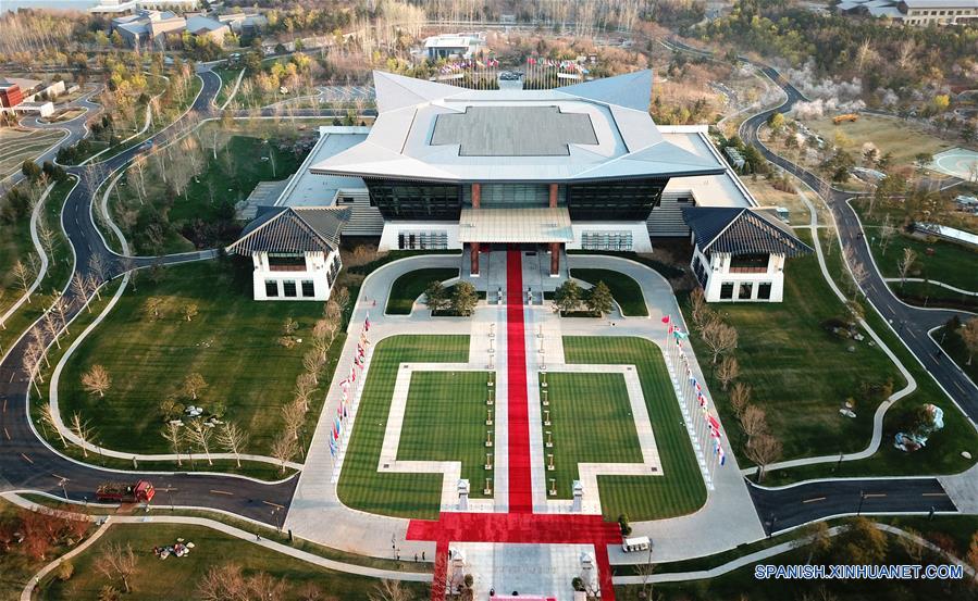 BEIJING, 24 abril, 2019 (Xinhua) -- Imagen del 4 de abril de 2019 de una vista aérea del paisaje del Centro Internacional de Exposiciones y Convenciones del lago Yanqi, en Beijing, capital de China. El II Foro de la Franja y la Ruta para la Cooperación Internacional se llevará a cabo del 25 al 27 de abril en Beijing. (Xinhua/Cai Yang)