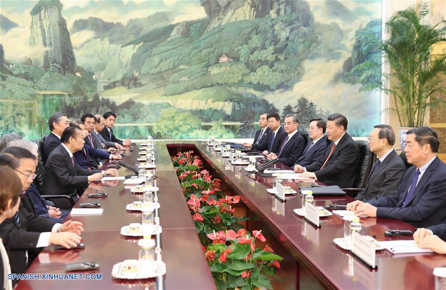 El presidente chino, Xi Jinping, se reúne con Toshihiro Nikai, enviado especial del primer ministro japonés y secretario general del Partido Liberal Democrático de Japón, antes del II Foro de la Franja y la Ruta para la Cooperación Internacional en Beijing, capital de China, el 24 de abril de 2019. (Xinhua/Huang Jingwen)