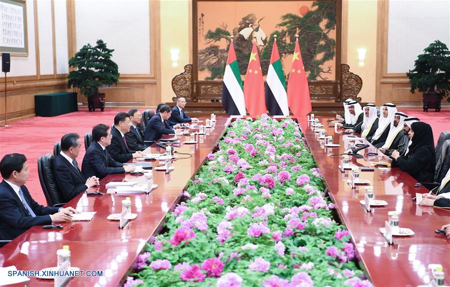 El presidente chino, Xi Jinping, se reúne con el vicepresidente y primer ministro de los Emiratos Arabes Unidos (EAU) y emir de Dubai, el jeque Mohammed bin Rashid Al Maktoum, quien se encuentra en Beijing para asistir al II Foro de la Franja y la Ruta para la Cooperación Internacional, en Beijing, capital de China, el 25 de abril de 2019. (Xinhua/Yan Yan)